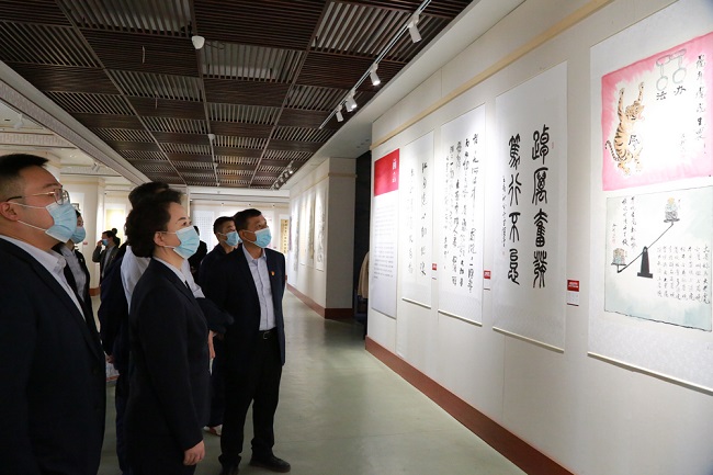 在現(xiàn)場,大家認真觀摩這些裝禎精美、聚焦主題的反腐倡廉文藝作品,通過細細品讀一幅幅傳神寫意的筆墨丹青,認真接受廉政文化教育,感悟廉政文化的真諦。觀展中,大家不時駐足仔細品味,深刻感悟書畫作品的“廉”之意境。