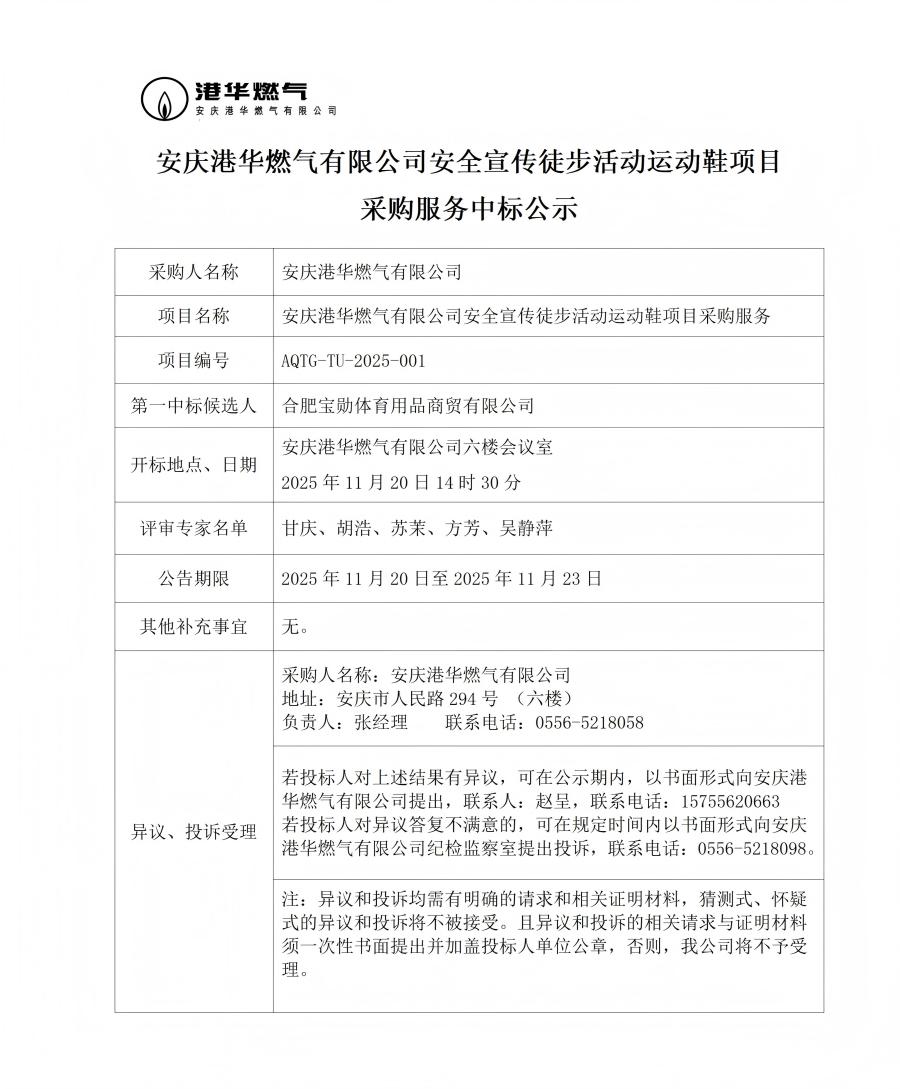 安慶港華燃?xì)庥邢薰景踩麄魍讲交顒?dòng)運(yùn)動(dòng)鞋項(xiàng)目采購服務(wù)中標(biāo)公示